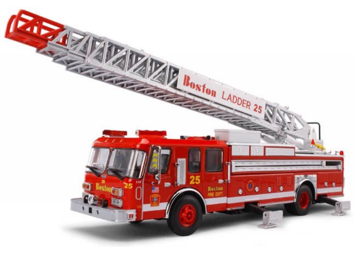Code 3 – Boston E – One Rear Mount Ladder 25, #12847. Original diecast release date of July 2007. Ladder 25 serves the West Roxbury area of Boston. This fire apparatus features bright red color with realistic Boston Fire logos, and a ladder that raises and turns. A must have for the New England diecast collector. All Code 3 stock are discontinued items and come with the original packaging. 1:64 scale.