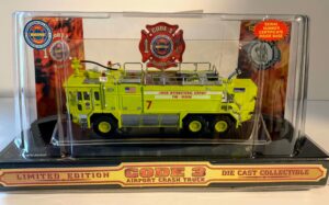 Code 3 – Boston Logan International Airport Oshkosh Crash Truck, #12152. This special release diecast has all the bells and whistles you have come to expect from Code 3. Emergency green/yellow color with chrome colored details. A must have for Boston, Fire or Airport diecast collectors. All Code 3 stock are discontinued items and come in the original packaging. 1:64 scale.