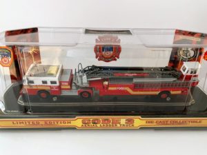 Code 3 – FDNY Bureau of Training Seagrave Aerial Ladder, #12658. Original diecast release date of October 1998. Replica of Ladder 147 used for training by the New York Fire Department. Known as “Da Pride of Flatbush”. Makes a great addition to any New York diecast collection. All Code 3 stock are discontinued items and come in the original packaging. 1:64 scale.