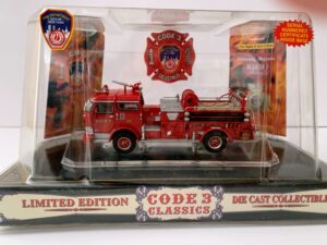 Code 3 – FDNY Mack C Pumper 65, #12380. Original diecast release date of December 2002. Many fine details including hose reel and chrome accents. This Mack is a great piece to add to any FDNY/New York diecast collection. All Code 3 stock are discontinued items and come with the original packaging. 1:64 scale.