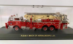 Code 3 – FDNY Mack CF Aerialscope Ladder 31, # 12513. Original diecast release date of February 2004. Ladder 31 proudly serves and protects the Bronx, NY. This limited edition diecast replica has many fine details. Features emergency lights, set of 3 working stabilizers, and extending ladder. Makes a great addition to your New York diecast collection. All Code 3 stock are discontinued items and come with the original packaging. 1:64 scale.