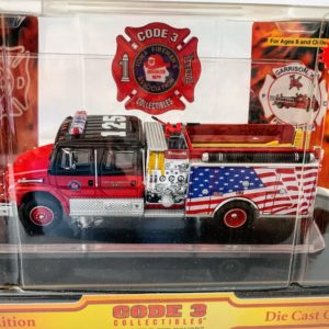Code 3 – Iowa Firemen’s Convention Show Special Freightliner Pumper, #12113. Original diecast release date of March 2003. Pumper 125 is one of the special Patriot Pumpers released by Code 3 featuring a colorful American flag on engine’s body. A must have for pumper diecast collectors. All Code 3 stock are discontinued items and come in the original packaging. 1:64 scale.