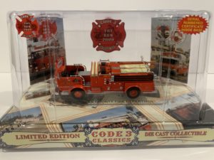 Code 3 – L.A. Toy Run 2000 Crown Pumper, #12956. Original diecast release date of November 2000 to commemorate the 2000 Los Angeles Toy Run. This annual fundraiser event is a convoy of motorcycles and fire and rescue apparatus created to benefit the patients of the Children’s Hospital in Los Angeles. Makes a great addition to your Los Angeles diecast collection. All Code 3 stock are discontinued items and come in the original packaging. 1:64 scale.