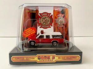 Code 3 – Los Angeles Suburban Battalion 10, #12400. Original diecast release date of February 1998. This diecast replica is available in Battalion numbers 3, 4, 10, 11, and 15. Makes a great starter piece for new collectors. A must have for any California fire diecast collector. All Code 3 items are discontinued items and come with the original packaging. 1:64 scale.