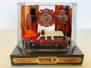 Code 3 – Los Angeles Suburban Division 3, #12400. Original diecast release date of February 1998. L.A. Suburban was also issued in division 4, 10, 11, and 15. Makes a nice addition to any California diecast collection. All Code 3 stock are discontinued items and come in the original packaging. 1:64 scale.