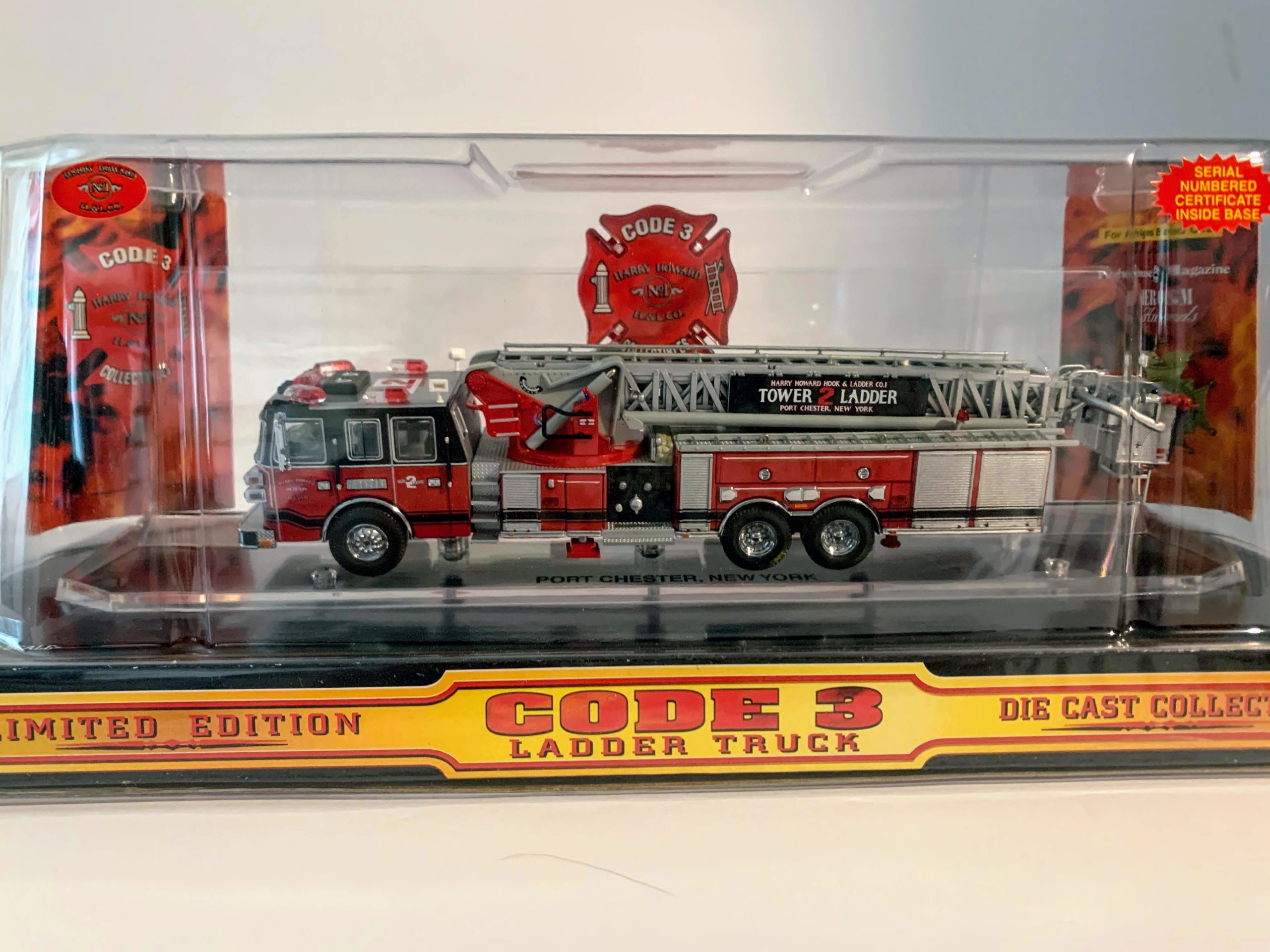 Code 3 – Port Chester, NY Sutphen Tower Ladder 2, #12932. This diecast replica has an original release date of January 2002. Ladder 2 is in memory of Chief Harry Howard. Howard implemented the “Bunk System”. This system allows firefighters to sleep at the station for quick call response on night shifts. This program saved countless lives and saved millions of dollars in property damage. Ladder 2 is a must have for any firefighting enthusiast. All Code 3 stock are discontinued items and comes in the original packaging. 1:64 scale.