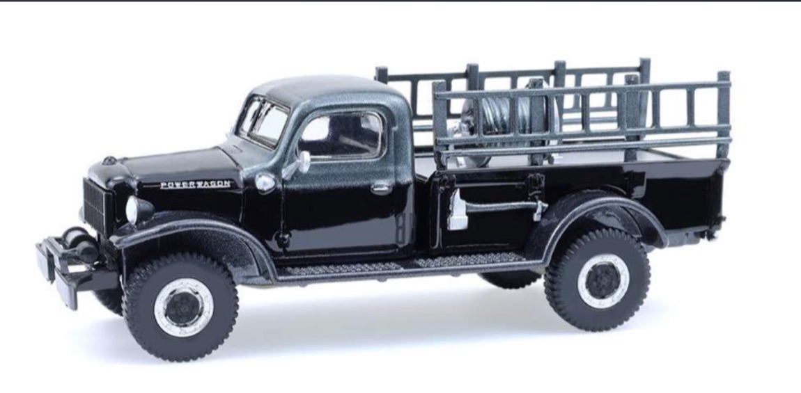 Dodge 1946 Power Wagon Fire Truck, Unmarked, #28170-C. Part of the Black Bandit Collection by Greenlight. Metal diecast construction with rubber wheels. This nicely detailed Dodge Fire Truck features an all black vehicle with chrome colored details on the hose reel, flatbed, wheels and the axe that hangs on the side. Ready to customize for your favorite fire department. 1:64 scale.