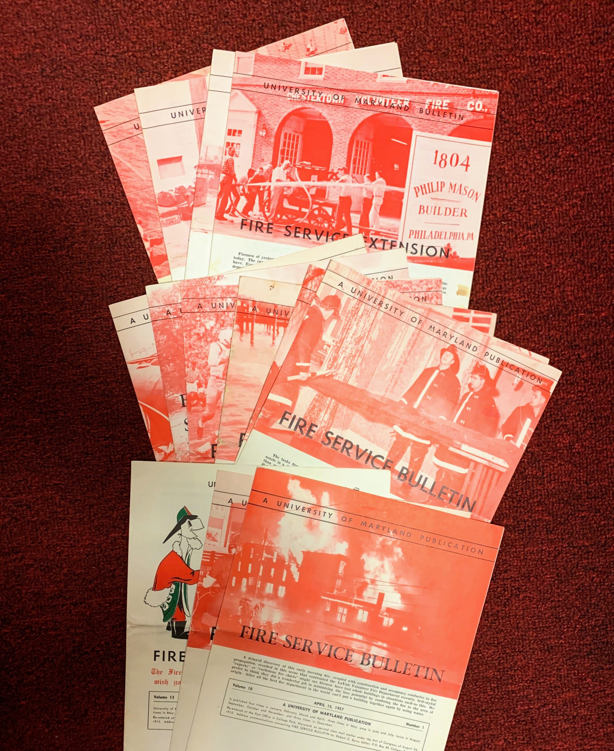 Vintage U of Maryland Bulletin Collection, Fire Service Extension. Own your own piece of fire history with this collection that was originally issued by the University of Maryland. This is set of 12 original, vintage bulletins from the 1950’s and 1960’s of various dates. Collection include issues from April 1957, April, May, June, August, and September of 1958, June and December of 1959, and February, March, April, and June of 1963. A must have for any University of Maryland alumni or the avid fire history buff.